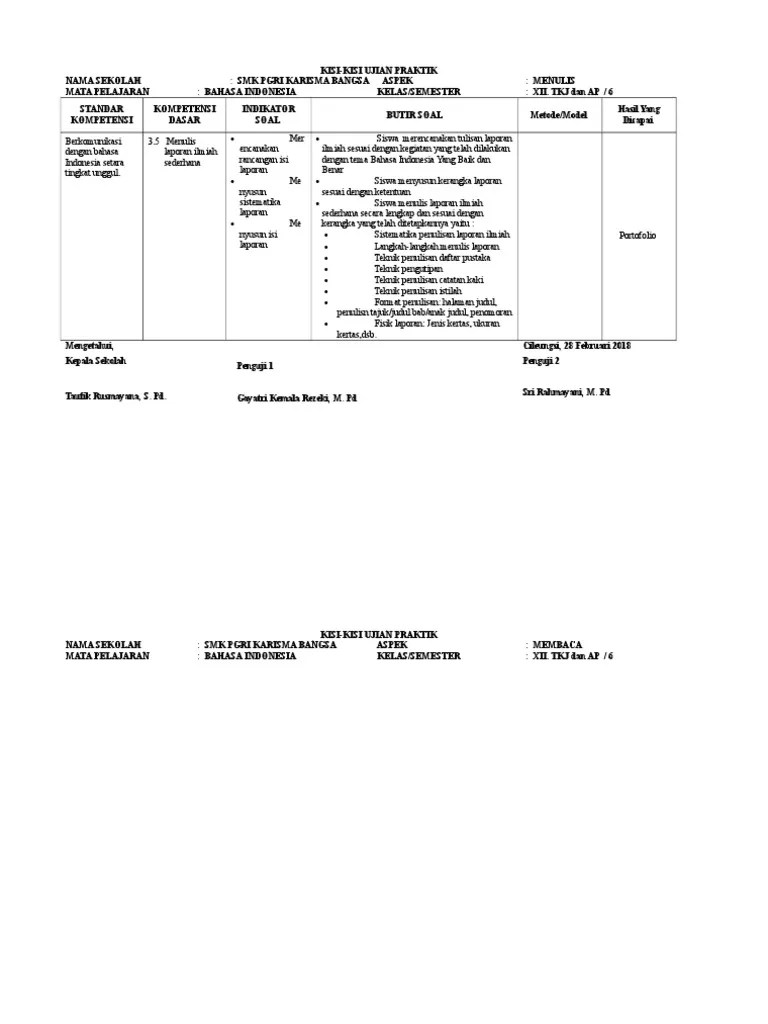 Kisi Kisi Ujian Praktek Bahasa Indonesia 2018 - Kisi Kisi Ujian Praktek Uas Kelas 6 Sd Mi Tahun 2017 Sekolahdasar Net / Mengetahui kepala sekolah kalibawang, 1 maret 2018 guru mata pelajaran iwan sulistya, s.